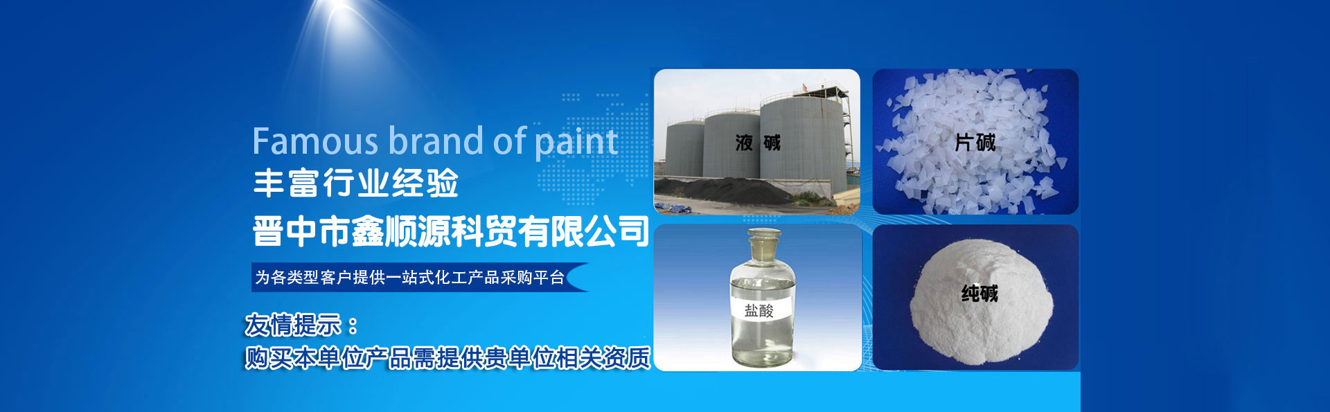 晋中市鑫顺源科贸有限公司成立于2012年9月4日,位于榆社县东大街大寺路,有安监局颁发的中华人民共和国危险化学品经营许可证和非药品类易制毒化学品经营备案证明,主要经营盐酸、次氯酸钠、液碱 、 片碱 、纯碱 、 硫酸 、 聚合氯化铝、 氯化钙、氯化钡、氯乙酸、氨水、水处理剂等危险化学品的销售及运输......